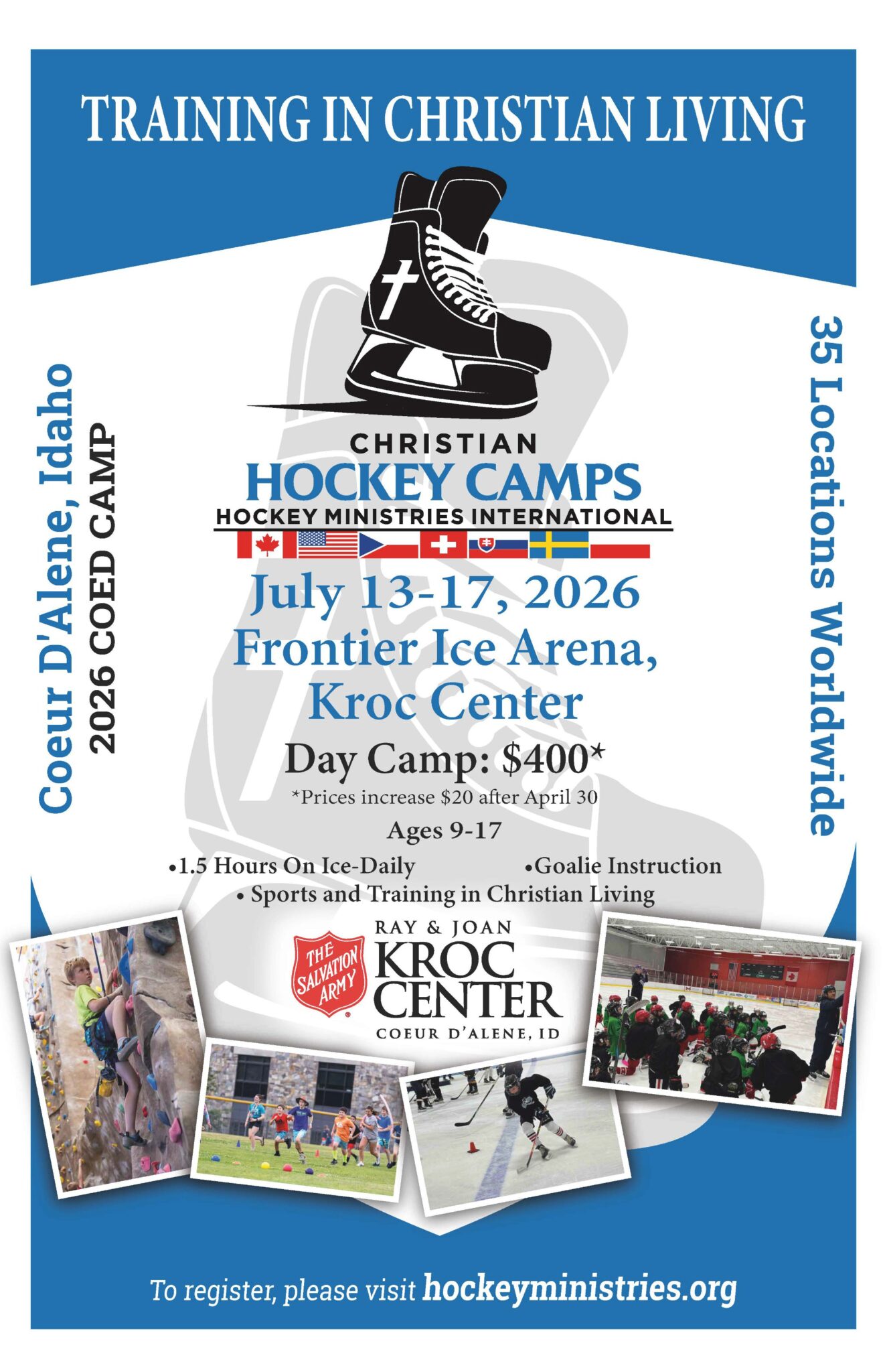The Coeur D'Alene camp is open to boys and girls between the ages of 9-17, it is an amazing week for a hockey player of any level. Christian Hockey Camp programs are designed to prepare hockey players for challenges, both on and off the ice. Campers will receive excellent instruction from some of the game's best players and coaches during the week.